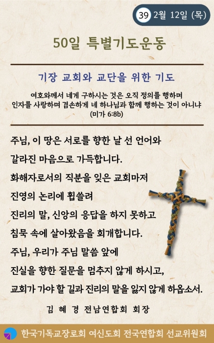 2026³â 50ÀÏ Æ¯º°±âµµ¿îµ¿ - 39ÀÏÂ÷(2¿ù 12ÀÏ)