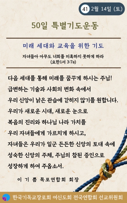 2026³â 50ÀÏ Æ¯º°±âµµ¿îµ¿ - 41ÀÏÂ÷(2¿ù 14ÀÏ)