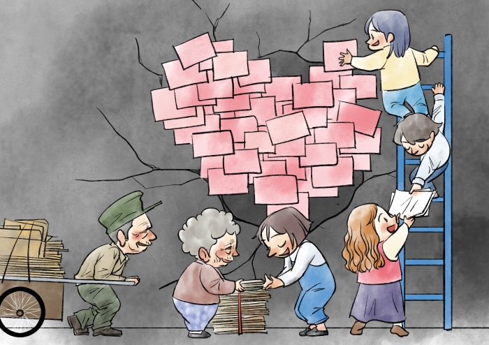 ¹ö·ÁÁø Á¾À̰¡ ´Ù½Ã(re) »ç¿ëµÇ´Â °ÍÀ» ³Ñ¾î, ¾ÆÇ Áö±¸¸¦ ´Ù½Ã(re) »ì¸®°í, »çȸÀû ¾àÀÚ¸¦ ÇâÇÑ '¿¬´ë¿Í Á¸¾ö'À» ´Ù½Ã(re) ¼¼¿ì´Â ±æ¿¡ ¸ðµÎ°¡ µ¿ÂüÇսôÙ.