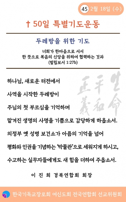 2026³â 50ÀÏ Æ¯º°±âµµ¿îµ¿ - 45ÀÏÂ÷(2¿ù 18ÀÏ)
