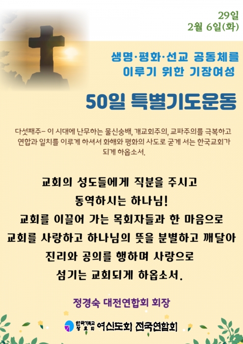 50ÀÏ Æ¯º°±âµµ¿îµ¿(2¿ù 6ÀÏ È¿äÀÏ) 29ÀÏÂ÷ ±âµµ¹®