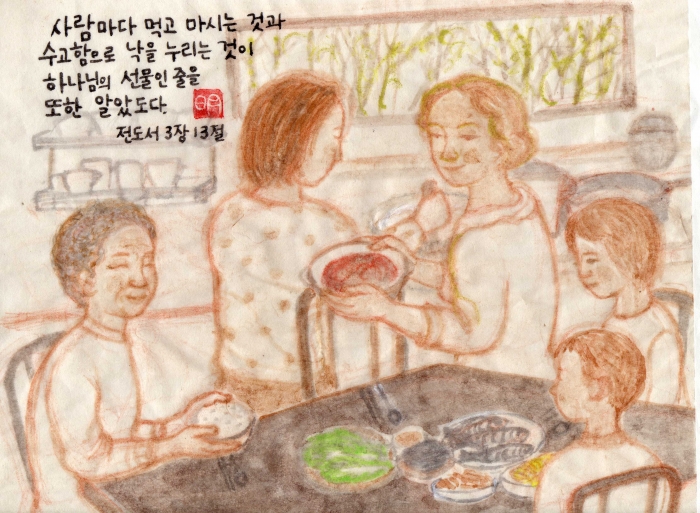 ¡°¹ä ÇÑ ±×¸©ÀÇ Àǹ̸¦ ¾Æ´Â ÀÚ´Â Çϳª´ÔÀ» ¾È´Ù. ¹ä ÇÑ ±×¸©À» ¾Æ¹« ±íÀº ¶æ ¾øÀÌ ¸Ô´Â ÀÚ´Â Çϳª´Ôµµ ±×·¸°Ô °Ô°É½º·´°Ô ¸Ô°Ô µÇ¾î Çϳª´ÔÀÇ °Å·èÀ» ¹üÇϰí Àڱ⠻ý¸íÀ» »óÇÏ°Ô ÇÑ´Ù. ¹ä ÇÑ ±×¸© ¾Õ¿¡¼ °¨»çÇÒ ÁÙ ¸ð¸£°í, ¿Ê±êÀ» ¿©¹Ð ÁÙ ¸ð¸£¸é ÁöÁ¸ÀÚ Çϳª´Ô ¾Õ¿¡¼µµ °¨»çÇÒ ÁÙ ¸ð¸£°í °æ¿ÜÇÏ´Â ¸¶À½À» ÀÍÈ÷Áö ¸ø ÇÑ´Ù.¡± (±è°æÀç, ¡®±×¸®½ºµµÀÇ ¿µ¼ºÈƷᯠÁß¿¡¼)